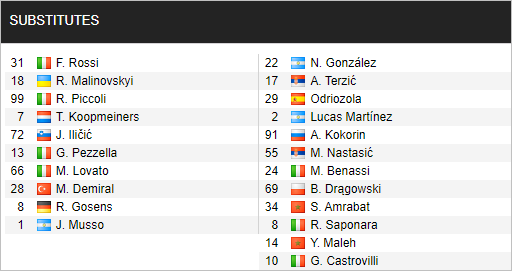 * Danh sách dự bị trận Atalanta vs Fiorentina, 01h45 ngày 12/9: VĐQG Italia