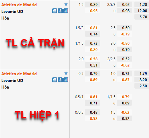 Tuy nhiên, trên sàn giao dịch châu Á lại chứng kiến đà tăng điểm chóng mặt của Atletico Madrid. Kèo chấp 1 1/2 hồi đầu phiên đã bị thay thế bằng chỉ số chấp 1 3/4 vào thời điểm bóng chuẩn bị lăn. Trong khi đó, kèo bàn thắng cả trận cũng được nới rộng từ 2 3/4 lên mức 3 hòa. Điều này rõ ràng cho thấy cơ hội dành cho Levante không nhiều, nhất là khi Atletico Madrid có sự tươi mới đáng hy vọng ở trận đấu này.