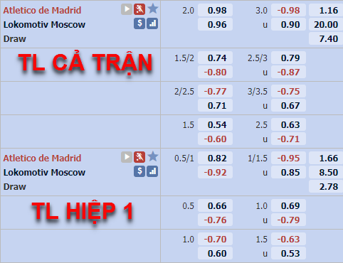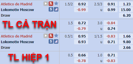 Tỷ lệ trận đấu đã có nhiều thay đổi thời gian vừa qua. Mốc tỷ lệ chấp 1 3/4 của Atletico Madrid ở thời điểm trước đây đã được nhà cái châu Á thay thể bằng mức chấp 2 hoà ở thời điểm hiện tại. Ở bên phía tỷ lệ tài xỉu của trận đấu cũng có diễn biến tương tự khi mốc chính 2 3/4 trước đây đã được kèo lên mức 3 hoà.