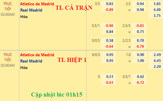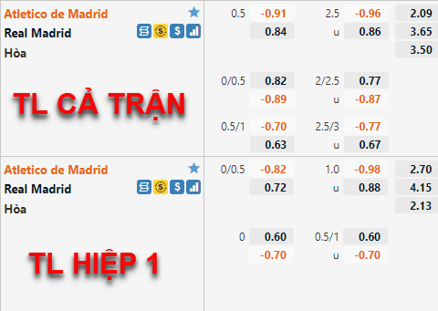 Sàn châu Á ghi nhận đà tăng giá đáng kể của Atletico Madrid, từ chỗ chấp hòa bỏ sâu giờ đây lợi nhuận cho họ ở mức thấp, thậm chí còn dần nhích lên mức chấp 3/4. Dịch chuyển như vậy ở một trận cầu "đinh" là rất lớn, nhưng thực tế Real không còn động lực do đã sớm vô địch.