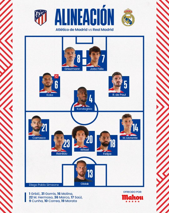 Atletico Madrid: Stefan Savic, Jan Oblak, José Giménez chấn thương. Thomas Lemar, Sergio Reguilón chưa chắc ra sân.