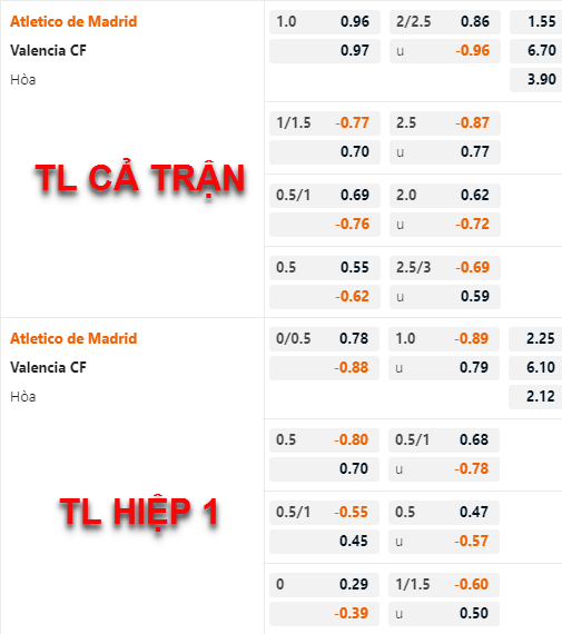 Đã không có nhiều thay đổi trong cách bố trí đội hình của 2 đội ở trận này, đặc biệt là Atletico Madrid vẫn đang có được lực lượng tốt nhất với phong độ cao thời gian gần đây. Mặc dù vậy thì trước đối thủ đang bết bát như Valencia, việc họ chỉ được xếp kèo chấp 1 hòa cho thấy đánh giá không quá cao từ nhà cái, vậy nên vẫn cón nhiều nghi ngờ.
