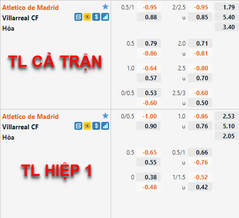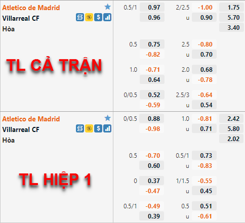 Atletico Madrid vẫn đang có tỷ lệ chấp chính là 3/4 như thời điểm chúng tôi cập nhật trước đây nhưng điểm ăn của đội chủ nhà đã được điều chỉnh giảm so với trước đây. Bên phía tỷ lệ tài xỉu, mốc 2 1/4 vẫn được duy trì là mốc chính của trận đấu và điểm ăn của cửa tài có xu hướng giảm thời gian vừa qua nhưng không nhiều.