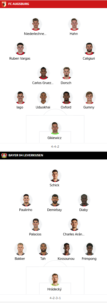 ĐỘI HÌNH RA SÂN trận Augsburg vs Leverkusen (20h30)