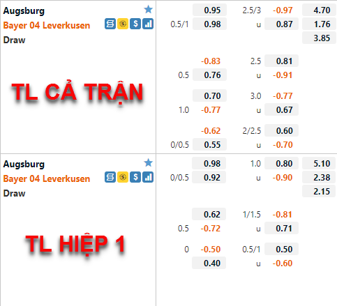 Đây là thời điểm để Leverkusen ổn định lại và thể hiện sức mạnh của ứng viên cho nhóm dẫn đầu. Trong khi đó, Augsburg cũng không có nhiều điểm tựa về chuyên môn để chơi sòng phẳng ở trận đấu này. Do đó, các chuyên gia đều tin vào cửa trên với diễn biến kèo tích cực như vậy.