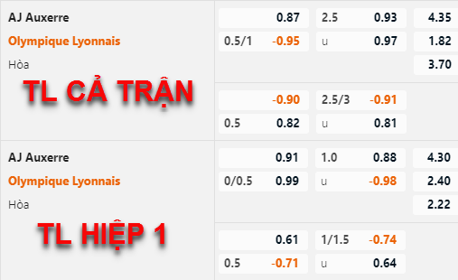 Dù tung vào sân đội hình mạnh nhất nhưng Lyon lại bất ngờ có diễn biến đáng lo ngại trên sàn giao dịch châu Á. Đội khách bị điều chỉnh giảm cả về tỷ lệ khi hồi đầu phiên có kèo chấp 3/4 cùng lợi điểm không quá chênh lệch giữa các lựa chọn đối lập nhưng sắp đến giờ bóng lăn đã bị điều chỉnh xuống còn chấp 1/2 cùng điểm ăn đã tiến sát mốc 0.90. Đây rõ ràng không phải điểm đến hứa hẹn với biến động quá lớn nói trên.