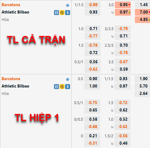 Tỷ lệ chấp của Barcelona tăng tương đối nhiều thời gian vừa qua, hiện tại đội chủ nhà đã có tỷ lệ chấp chính 1 1/4 thay cho mức 1 hoà ở lần chúng tôi cập nhật trước. Tỷ lệ tài xỉu cũng có diễn biến tương tự khi mốc 2 3/4 trước đây đã được thay thế bằng mốc 3 hoà.