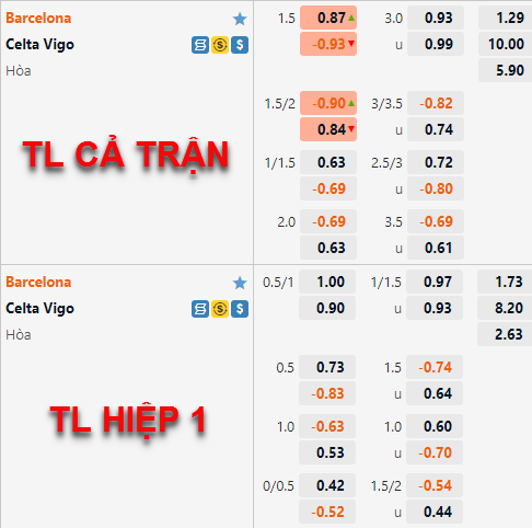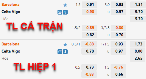 Tỷ lệ của Barcelona có xu hướng tăng điểm, tỷ lệ chấp chính của đội chủ nhà vẫn được duy trì ở mức 1 1/2 nhưng điểm ăn của cửa trên đã được nhà cái điều chỉnh giảm so với trước đây. Bên phía tỷ lệ tài xỉu của trận đấu lại gần như không có biến động nào đáng kể, mốc 3 hoà vẫn là mốc chính của trận đấu và điểm ăn của hai cửa cũng không có thay đổi nào đáng kể.