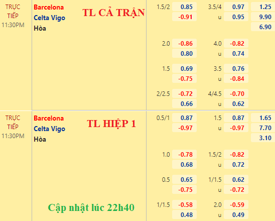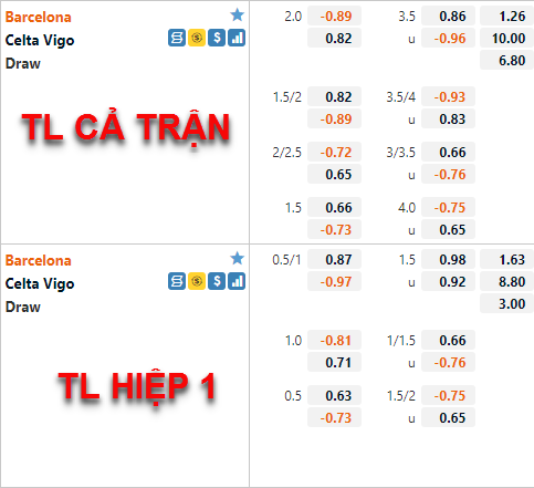 Trên sàn châu Á, Barca vẫn chấp dao động giữa 1 3/4 và 2 hòa, nhưng vấn đề đáng lưu ý hơn là mức tài xỉu 3 1/2 đã được kéo lên thành 3 3/4. Barca công tốt nhưng thủ kém, và Celta Vigo lại có nhiều nhân tố chất lượng ở tuyến trên. Vì thế, cửa tài đáng để chờ đợi ở cuộc chiến này!
