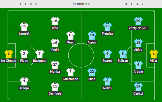 Cả 2 HLV đều tung vào sân những nhân tố tấn công tốt nhất như Messi, Griezmann, Dembele (Barca) hay Aspas, Santi Mina (Celta Vigo). Trên thực tế Barca gần như không có cửa vô địch, trong khi Celta Vigo cũng thoải mái tâm lý.