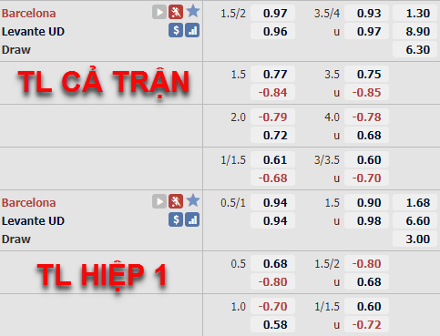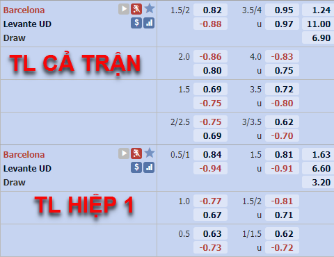 Barcelona vẫn đang duy trì mức chấp 1 3/4 trên thị trường châu Á như thời điểm chúng tôi cập nhật trước đây nhưng điểm ăn của cửa trên hiện tại đã được điều chỉnh giảm khả nhiều. Ngược lại thi tỷ lệ tổng bàn thắng của trận đấu lại không có nhiều biên động, mức 3 3/4 vẫn là tỷ lệ chính của trận đấu và điểm ăn cũng không có thay đổi nào đáng kể.