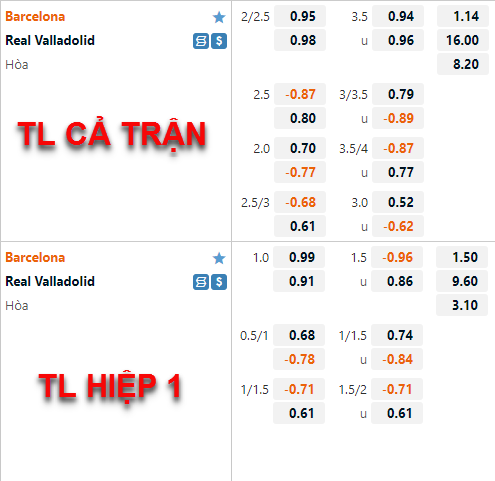 Diễn biến trên sàn giao dịch cho thấy giới đầu tư trên thị trường đang hoàn toàn tin tưởng vào khả năng thắng kèo của Barcelona trận này. Nhưng theo chúng tôi hiện tại Valladolid hiện tại cũng không phải là đối thủ dễ chơi, 3 trận sân khách gần nhất Valladolid cũng chỉ để thủng lưới 1 lần. Khả năng Valladolid thua trận vẫn rất cao nhưng có thể họ sẽ tạo ra một số khó khăn cho Barcelona trận này.