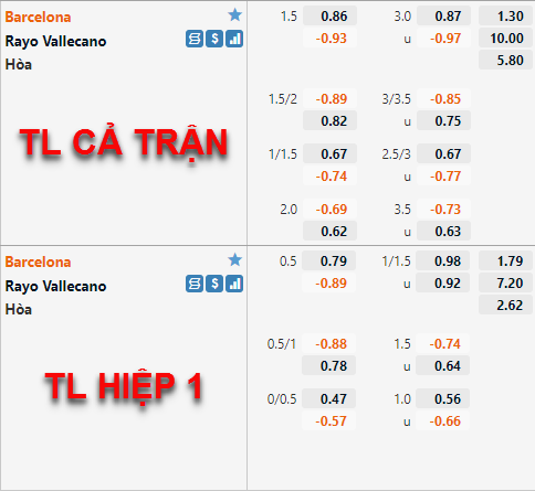 Tham khảo: Barcelona -3/4 Hiệp 1
