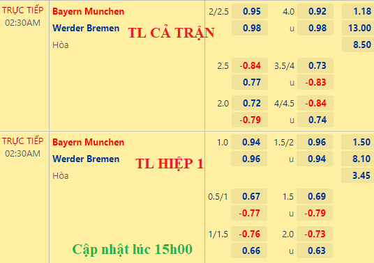 AEGoal chốt kèo bóng đá trực tiếp trận Bayern Munich vs Bremen diễn ra lúc 02h30 ngày 09/11/2022 trong khuôn khổ giải VĐQG Đức sau khi dựa trên tính toán, chuyển động về kèo châu Á và đội hình ra sân của 2 đội.