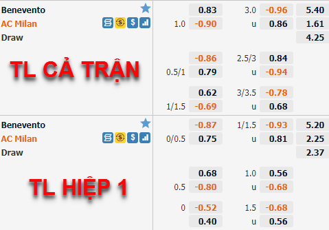 Tham khảo: AC Milan -1/4 Hiệp 1