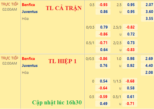 AEGoal chốt kèo bóng đá trực tiếp trận Benfica vs Juventus diễn ra lúc 02h00 ngày 26/10/2022 trong khuôn khổ vòng bảng UEFA Champions League sau khi dựa trên tính toán, chuyển động về kèo châu Á và đội hình ra sân của 2 đội.