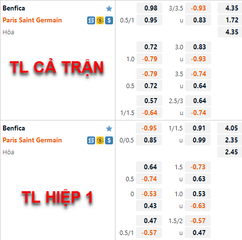 Những diễn biến trên sàn giao dịch cho thấy thị trường đang có vẻ nghiêng về dự đoán có lợi cho đội chủ nhà cũng như tin tưởng vào kết quả xỉu của trận đấu. Dự đoán này cũng không quá vô lý khi Benfica thế hiện lối chơi ấn tượng ở 2 lượt đấu trước trong khi PSG mặc dù luôn được đánh giá rất cao nhưng không thể vượt qua rao cản của nhà cái châu Á 5 trận gần nhất. Nhưng với sức mạnh vượt trội trên hàng công của PSG hiện tại thì lựa chọn cửa xỉu có lẽ sẽ là lựa chọn hợp lý.