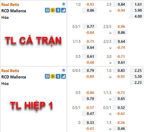 Tham khảo: Mallorca +1/4 hiệp 1.