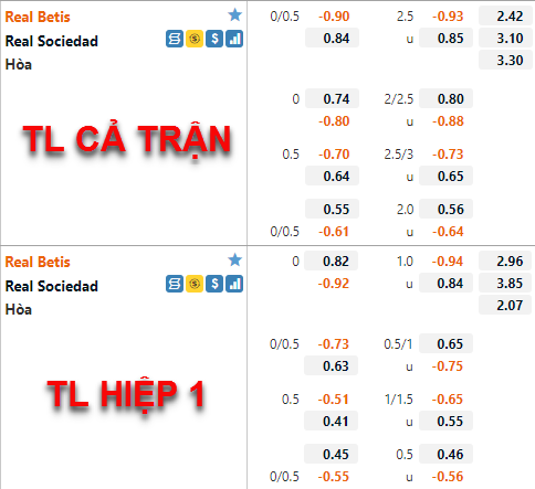 Biến động trên sàn giao dịch châu Á đang điểm lại những dấu hiệu tích lựa cho lựa chọn cửa dưới và tài trận này. Nhưng theo chúng tôi mặc dù Betis đang duy trì trước phong độ ấn tượng nhưng với lực lượng hiện tại Sociedad cũng không dễ bị bắt nạt, không dễ để lựa chọn kèo Handicap trận này. Nhưng với lối chơi tương đối cởi mở của Sociedad thì chọn cửa tài sẽ là một lựa chọn đáng lưu ý.