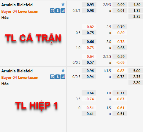 Trong một diễn biến khác, với kèo tổng bàn thắng vẫn duy trì được ở mức -3/4, vị thế của Leverkusen vẫn được đánh giá là thuận lợi so với đối thủ, vì vậy niềm tin dành cho họ là không hề nhỏ. Ở phương diện tổng bàn thắng, với kèo Tài Xỉu tăng từ 2 3/4 lên 3 hoà, đánh giá cho khả năng bùng nổ của trận đấu là rất lớn, vì vậy mốc trên được xem như rất đáng trông đợi.