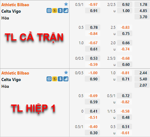 AEGoal chốt kèo bóng đá trực tiếp trận Bilbao vs Celta Vigo diễn ra lúc 23h30 ngày 17/04 trong khuôn khổ giải VĐQG Tây Ban Nha sau khi dựa trên tính toán, chuyển động về kèo châu Á và đội hình ra sân của 2 đội.
