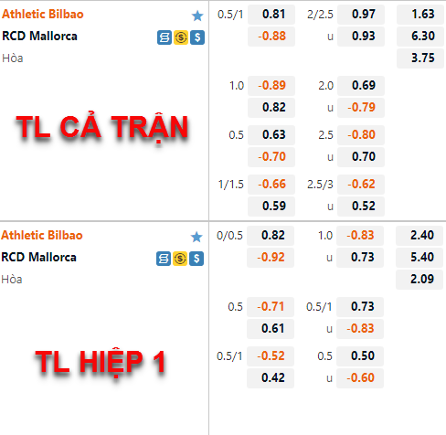 Tỷ lệ chấp chính của Bilbao vẫn được duy trì ở mức 1 hoà nhưng hiện tại điểm ăn của cửa trên đã được điều chỉnh giảm đáng kể so với lần chúng tôi cập nhật trưa nay. Tương tự bên phía tỷ lệ tài xỉu cũng có điều chỉnh giảm điểm ăn của cửa tài và mốc chính của trận đấu vẫn được duy trì ở mức 2 1/4.