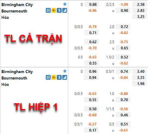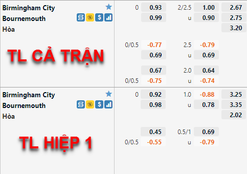 Diễn biến trên sàn giao dịch cho thấy giới đầu tư có chút nghiêng về phía đội chủ nhà trận đấu này. Điều này hoàn toàn hợp lý, tỷ lệ chấp của Birmingham đã có những thay đổi tích cực so với thời điểm bắt đầu công khai trên sàn giao dịch, ở thời điểm đầu tiên Bournemouth còn được đánh giá ở cửa trên. Với phong độ đã thể hiện sau 2 vòng đấu đầu tiên và lợi thế sân nhà Birmingham hoàn toàn đủ khả năng có một kết quả tốt trận này.