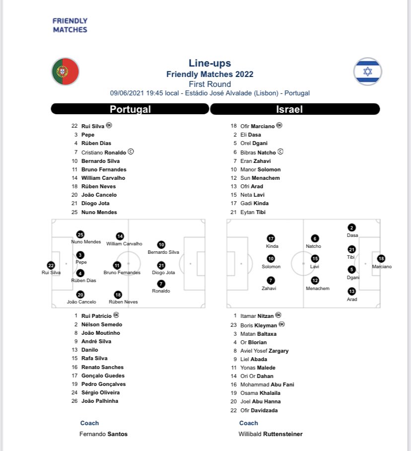 - Trận đấu: Bồ Đào Nha vs Israel (Giao hữu quốc tế)