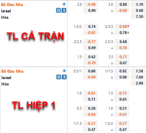 Tỷ lệ của trận đấu đã có những biến động lớn trong thời gian vừa qua. Hiện tại ĐT Bồ Đào Nha đang có tỷ lệ chấp chính ở mức 2 hoà thay cho mức 1 1/2 ở lần chúng tôi cập nhật trước đây. Tương tự bên phía tỷ lệ tài xỉu của trận đấu cũng có diễn biến tương tự khi mốc 2 1/2 trước đây đã được đẩy lên mức 3 hoà.