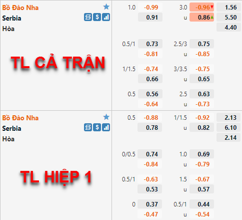 Thay đổi trên sàn giao dịch châu Á đang đem lại dấu hiệu tốt cho lựa chọn cửa tài trận đấu này. Điều này hợp lý khi đội khách cần 1 chiến thắng trận này để giành ngôi đầu bảng và được dự đoán chủ động tân công ngay từ đầu, nhưng theo chúng tôi Serbia với lực lượng kém hơn đối thủ sẽ không mạo hiểm tân công ngay từ đầu, ở phía bên kia Bồ Đào Nha chỉ cần 1 kết quả hoà và lựa chọn tốt nhất của đội chủ nhà thi đấu thận trọng và chờ đợi sơ hở từ phía đối phương.