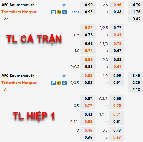 AEGoal chốt kèo bóng đá trực tiếp trận Bournemouth vs Tottenham diễn ra lúc 21h00 ngày 29/10/2022 trong khuôn khổ giải Ngoại hạng Anh sau khi dựa trên tính toán, chuyển động về kèo châu Á và đội hình ra sân của 2 đội.