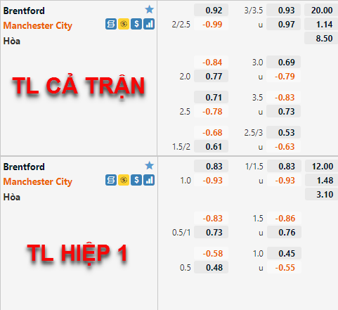 Tỷ lệ tài xỉu của trận đấu cũng đã có những biến động đáng kể khi mốc chính 3 1/4 trước đây đã được thay thể bằng mốc 3 1/2 ở thời điểm hiện tại, diễn biến này đem lại dấu hiệu tốt cho lựa chọn cửa tài trận này. Điều này không quá vô lý khi Brentford không có nhiều khả năng chơi phong ngự trong khi Man City đang có phong độ cực kỳ ấn tượng thời điểm này.