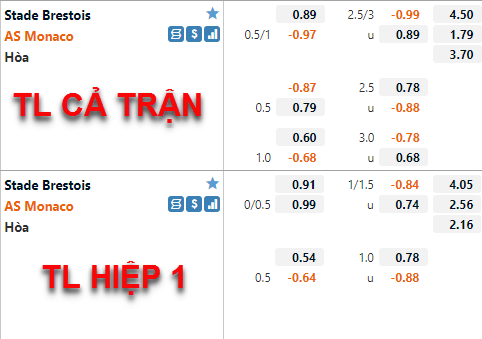 Việc Sidibe, Golovin ngồi ghế dự bị khiến Monaco giảm điểm rất lớn trên sàn giao dịch châu Á. Kèo chính chấp 3/4 đã dần bị thay thế bằng tỷ lệ chấp 1/2 vào thời điểm bóng chuẩn bị lăn. Trên lý thuyết là tín hiệu bất lợi cho cửa trên, nhất là khi Monaco không có phong độ ổn định từ đầu mùa.