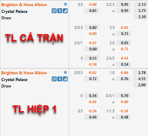 CHỐT KÈO trực tiếp trận Brighton vs Crystal Palace, 03h00 ngày 15/01: CHỐT KÈO HIỆP 2