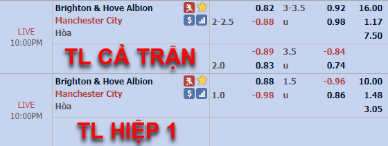 Tung vào sân đội hình mạnh nhất, Man City muốn tự quyết chức vô địch nhưng thị trường châu Á đang có phản ứng tiêu cực với họ. Tỷ lệ chính từ thời điểm đầu được niêm yết chứng kiến đội khách chấp 2 1/4 cùng lợi điểm cân bằng. Đến thời điểm hiện tại, Man City bị đẩy xuống tỷ lệ áp sát chấp 1 3/4. Việc giảm tới gần 1/2 quả bóng rõ ràng là tín hiệu xấu với đội cửa trên.