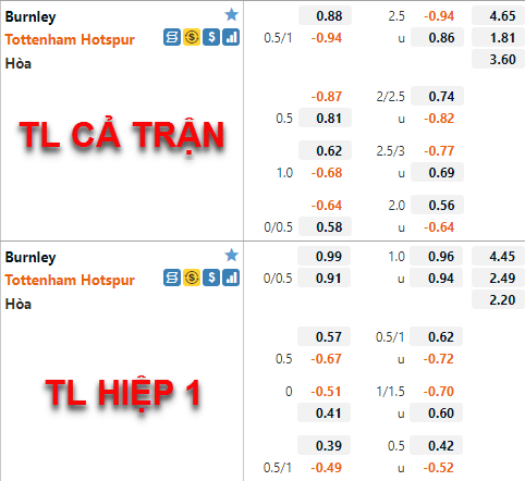 Diễn biến trên thị trường châu Á cho thấy giới đầu tư cũng không mấy tin tưởng vào khả năng thắng kèo của Tottenham trận đấu này. Nhưng theo chúng tôi với tỷ lệ chấp vẫn duy trì ở mức 3/4 như hiện tại là một điểm cộng không nhỏ cho Tottenham bởi đây là mức chấp tương đối cao so với thời điểm tỷ lệ trận đấu bắt đầu được công khai. Mức chấp của Tottenham trận này cũng là một mức chấp cao của đội khách trong quá khứ đối đầu với Burnley