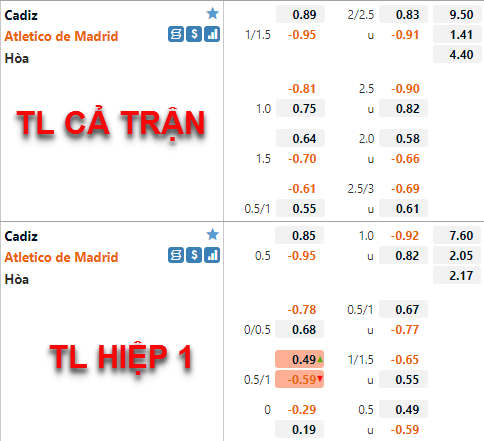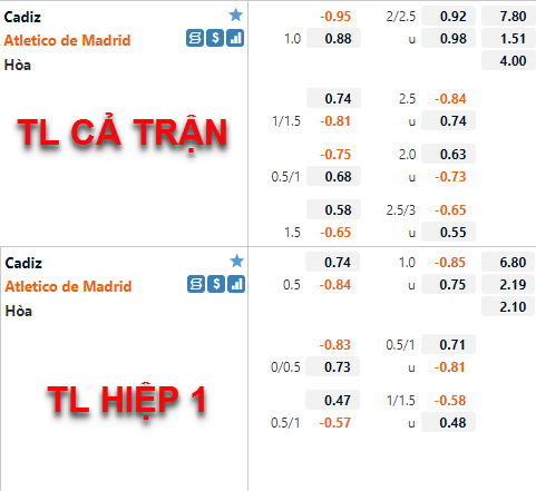 Tham khảo: Atletico Madrid -1 1/4 cả trận