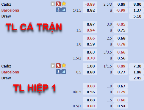 AEGoal chốt kèo bóng đá trực tiếp trận Cadiz vs Barcelona diễn ra lúc 03h00 ngày 6/12 trong khuôn khổ giải VĐQG Tây Ban Nha sau khi dựa trên tính toán, chuyển động về kèo châu Á và đội hình ra sân của 2 đội.