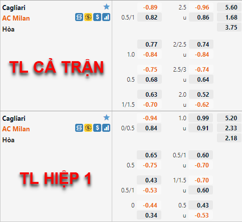 AEGoal chốt kèo bóng đá trực tiếp trận Cagliari vs AC Milan diễn ra lúc 02h45 ngày 20/03 trong khuôn khổ giải VĐQG Italia sau khi dựa trên tính toán, chuyển động về kèo châu Á và đội hình ra sân của 2 đội.