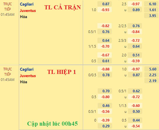 AEGoal chốt kèo bóng đá trực tiếp trận Cagliari vs Juventus diễn ra lúc 01h45 ngày 10/04 trong khuôn khổ giải VĐQG Italia sau khi dựa trên tính toán, chuyển động về kèo châu Á và đội hình ra sân của 2 đội.