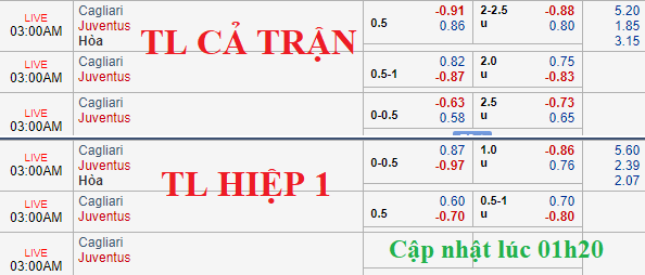 Điều đáng nói hơn nữa là Juventus lại đá với sơ đồ 4-5-1. Bên phía chủ nhà, họ cũng sử dụng chiến thuật 4-3-1-2 ưu tiên nhiều cho mặt trận phòng ngự. Kèo chấp hòa của Juventus so với chiều ngày 02/04 không có thay đổi đáng kể nhưng ở mốc tài xỉu thì lại dịch chuyển khá lớn. Theo đó, điểm ăn cho cửa xỉu ở mốc 2 1/4 lúc 13h00 ngày 02/04 là 0.96 thì đến 01h20 chỉ còn 0.80. Vậy nên chọn Xỉu là an toàn hơn cả!