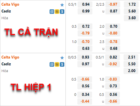 Như vậy, giới điều khiển kèo đánh giá thấp khả năng Cadiz ghi được bàn thắng và tất nhiên niềm tin dành cho Celta Vigo ngày càng lớn hơn vào lúc này.