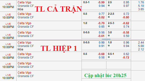 Nếu so với phiên khớp lệnh lúc 9h sáng nay thì tỷ lệ chính đã có dịch chuyển đáng kể khi kèo chấp hòa của Celta Vigo được gia tăng lên thành 3/4 và chênh lệch về điểm ăn cho 2 cửa cũng không quá lớn. Điều đáng nói là handicap dịch chuyển trong bối cảnh mốc tài xỉu 2 1/2 vẫn được giữ nguyên, thậm chí lợi nhuận không thay đổi quá nhiều.