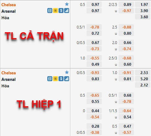 Việc Chelsea không xuất phát với đội hình mạnh nhất của mình đã khiến thị trường châu Á nghi ngờ khả năng thắng kèo của họ trận đấu này. Điều này cũng không quá vô lý khi trước mắt đội chủ nhà là trận chung kết cúp FA và họ cần phải đảm bảo thể lực cho các cầu thủ trụ cốt. Nhiều khả năng Chelsea sẽ chủ động chơi chặt chẽ và chờ đợi sơ hở từ phía Arsenal trận này. Lựa chọn cửa xỉu có lẽ sẽ là một lựa chọn an toàn