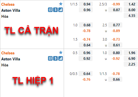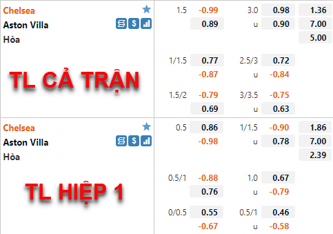 Tham khảo: Chelsea -1/2 Hiệp 1