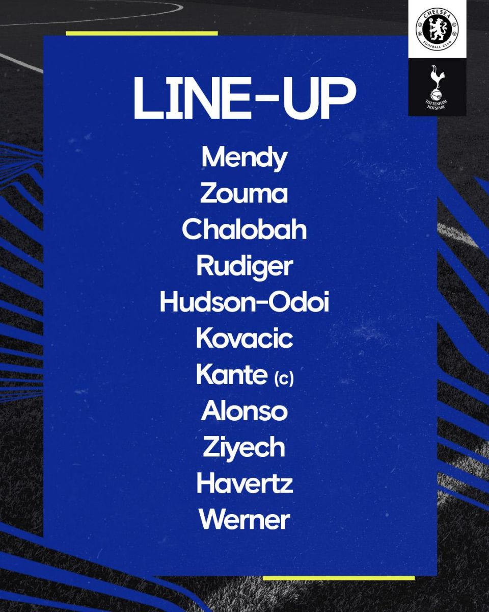 - Chelsea: Kepa; Zouma, Sarr, Rudiger; Hudson-Odoi, Kante, Barkley, Pulisic; Ziyech, Werner; Abraham.
