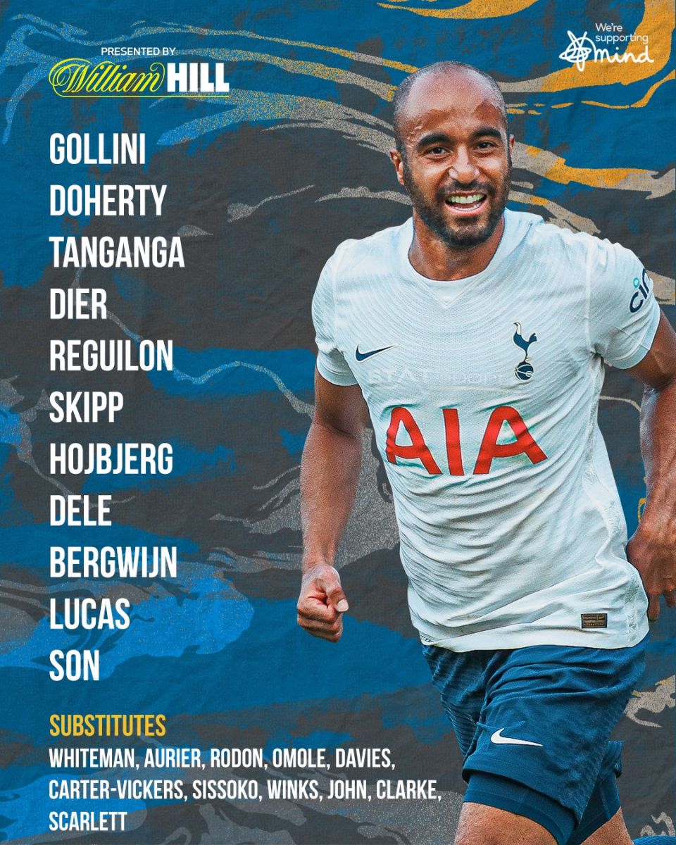 - Tottenham: Gollini; Doherty, Tanganga, Dier, Reguilon; Winks, Ndombele; Lucas, Alli, Bergwijn; Son Heung-min.