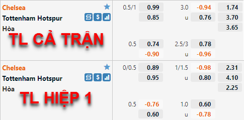 Tỷ lệ của Chelsea có xu hướng tăng điểm rõ rệt trong thời gian vừa qua, tỷ lệ chấp chính của đội chủ nhà đã được nhà cái đẩy lên sát mức 1 hoà thay cho mức 3/4 điểm ăn cân bằng như lần chúng tôi cập nhật chiều qua. Trong khi đó tỷ lệ tài xỉu của trận đấu lại có xu hướng giảm điểm, mốc chính 3 hoà trước đây đã được thay thể bằng mốc 2 3/4 ở thời điểm hiện tại.
