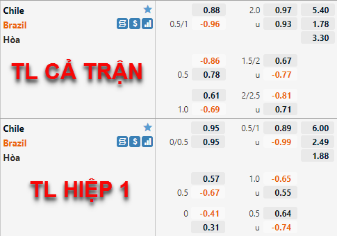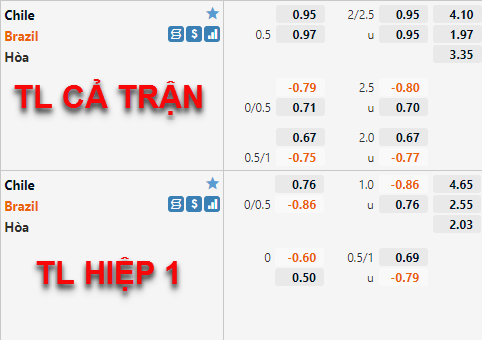 Tỷ lệ chấp của Brazil có xu hướng tăng điểm thời gian vừa qua, hiện tại mức chấp 3/4 được đẩy lên làm mức chấp chính của trận đấu thay cho mức 1/2 ở lần chúng tôi cập nhật hôm qua, trong khi đó bên phía tỷ lệ tài xỉu của trận đấu lại có diễn biến trái chiều khi mốc chính của trận đấu đã bị kéo xuống 2 hoà từ mức 2 1/4.