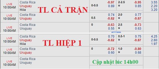 Chốt kèo trực tiếp trận Costa Rica vs Uruguay (09h00)